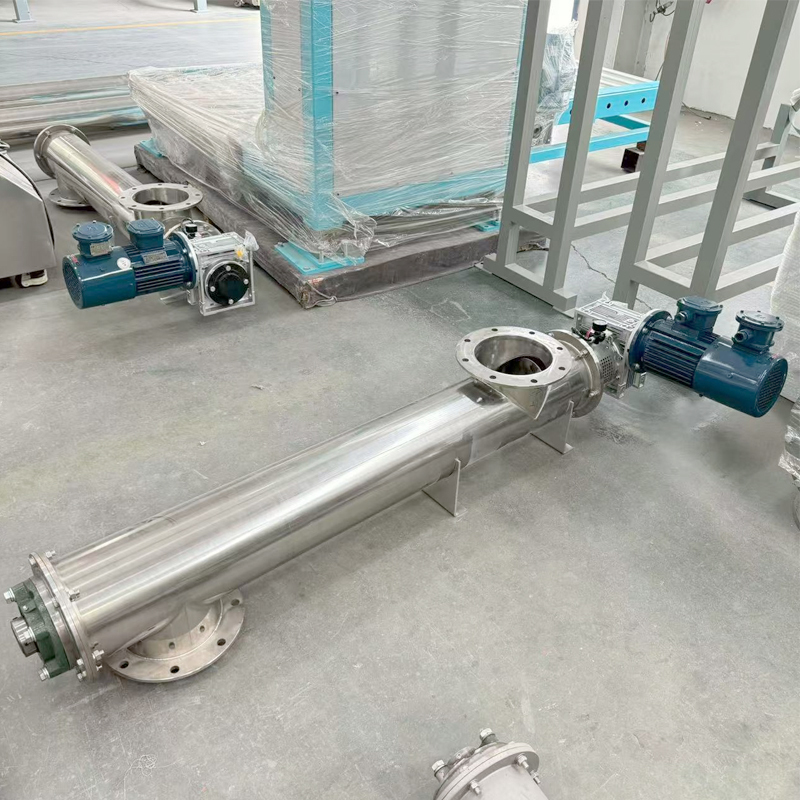 1.Conveyor vít vận chuyển vật liệu hỗn hợp từ máy trộn ruy băng đến một conveyor vít ngang