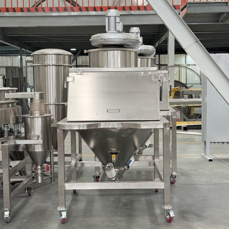 The dust-free feeding station is a specialized equipment used in industrial production to ensure the clean feeding of materials. It is suitable for powders, particles and other dust-prone materials. Through negative pressure suction and sealed chambers, it can prevent dust from escaping during feeding, thereby protecting the workshop environment and the health of personnel.