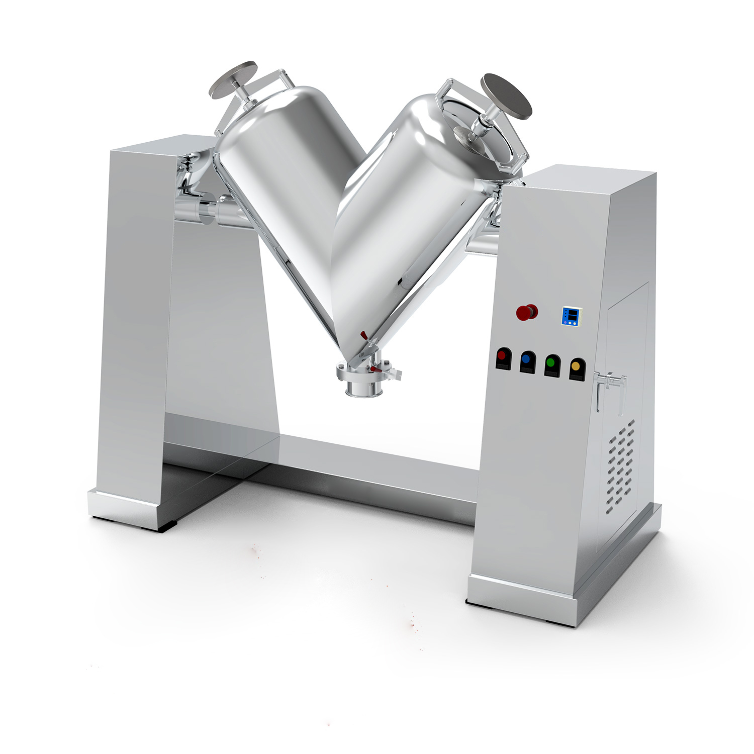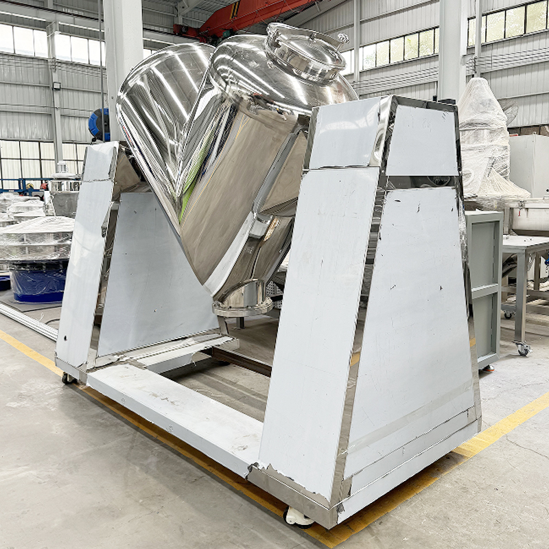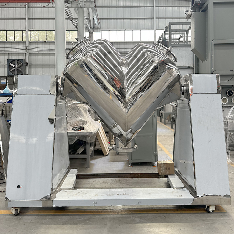 Máy trộn hình chữ V là một thiết bị trộn bột hiệu quả và đa năng. Thân chính của nó bao gồm hai phần hình trụ bất đối xứng được nối với nhau theo hình chữ V. Trong quá trình vận hành, các xi lanh quay quanh trục của chúng, khiến các vật liệu bên trong liên tục trải qua quá trình kết tụ và phân tách, từ đó đạt được sự trộn nhanh chóng và đồng đều. Thiết bị này có cấu trúc đơn giản, dễ vận hành và có thành trong nhẵn không có cặn, giúp dễ dàng vệ sinh và bảo trì. Nó đặc biệt phù hợp với các ngành có yêu cầu về vệ sinh trong quá trình trộn. Nó được sử dụng rộng rãi trong các ngành dược phẩm, thực phẩm và hóa chất, và phù hợp để trộn nhẹ nhàng và hiệu quả các loại bột khô và vật liệu dạng hạt khác nhau.